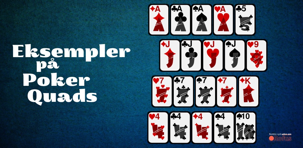 Quads eller four-of-a-kind er en spændende poker hånd, der er en sjælden nok hånd til at begejstre spillere, når de ser den, men du skal huske, at det ikke er den bedst mulige hånd i noget pokerspil.