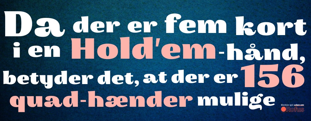 Da der er fem kort i en Hold’em-hånd, betyder det, at der er 156 quad-hænder mulige.